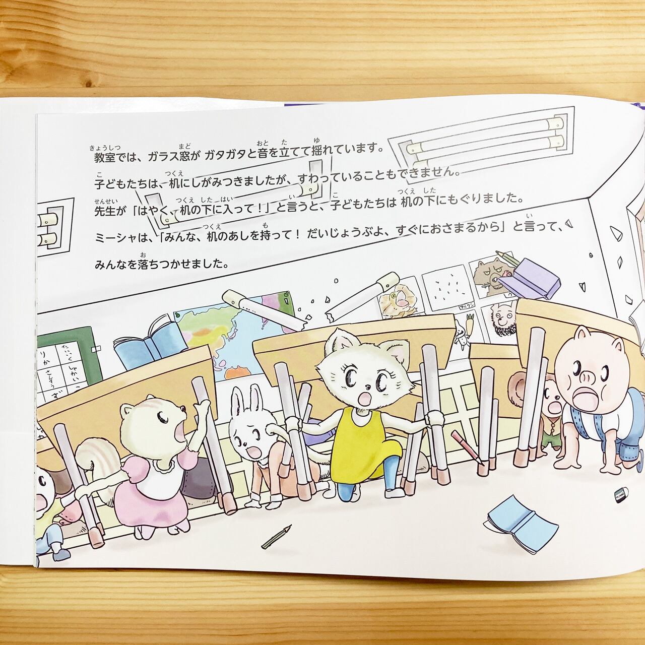 巻末に別冊付録「大きな地震からいのちをまもる パンダ隊長のおまもりポケットカード」付き。